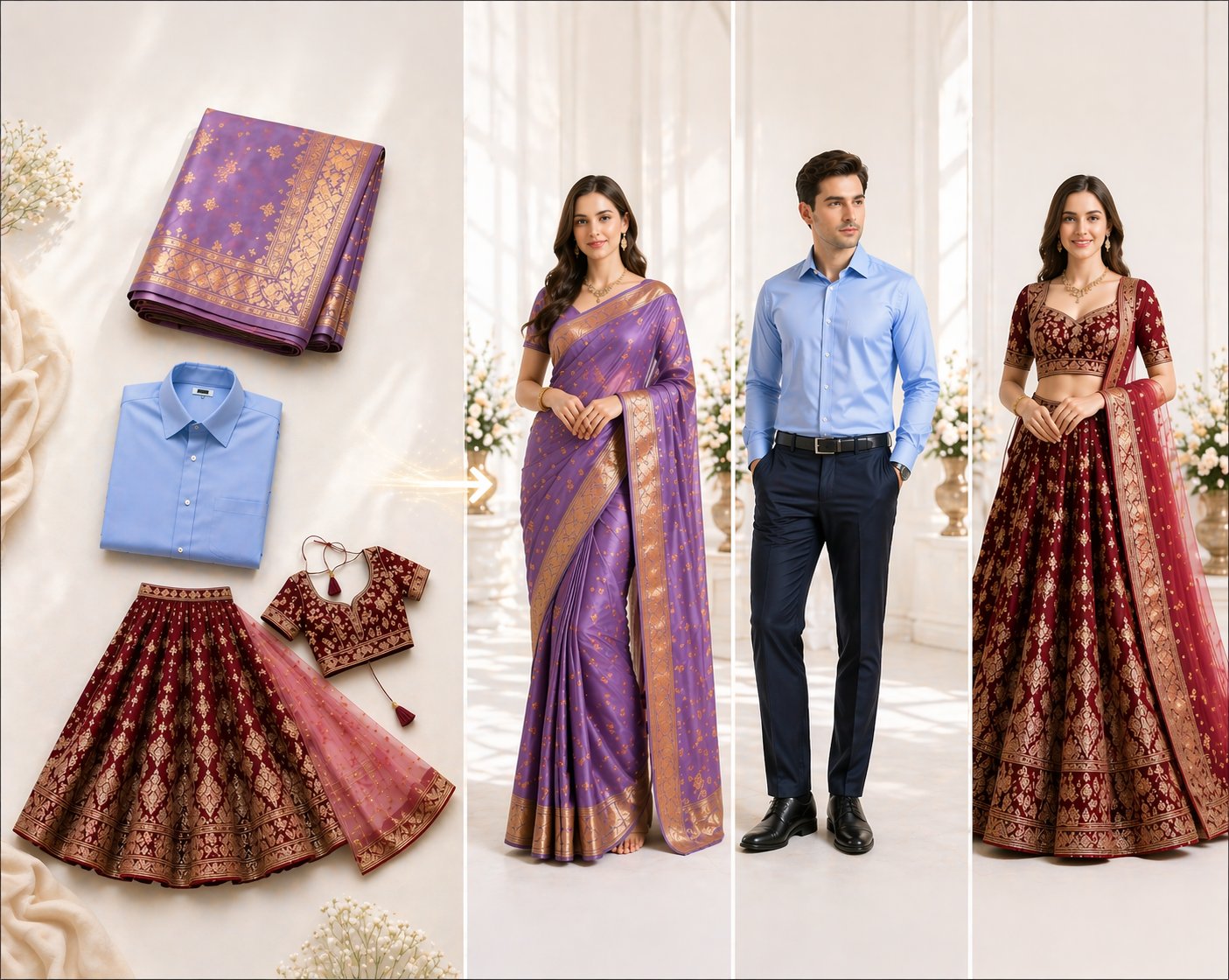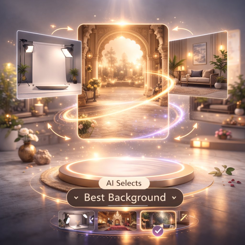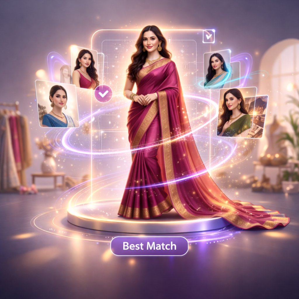 Upload your saree or jewellery image, choose your preferences, and let AI create high-quality catalogue images that look professionally shot.